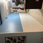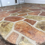 "Jeff took off the existing layers down to bare concrete, routed and epoxied the cracks, put down a bonding layer, a layer of stamped concrete,, and 2 layers of sealer."