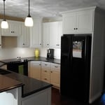 "I hired Laban to build a set of upper and lower cabinets for a bar area, a bathroom vanity and a floor to ceiling linen/storage cabinet along with some floating shelves fitted between the upper cabinets in the bar area. He came to my house and I described what I was looking to do. He listened and took some notes. Not long after, he provided professional drawings of what the cabinets would look like with all dimensions of each piece. I was impressed with all of the details which reflected everything I had described exactly. I also went through Laban to pick out and order quartz countertops through one of the vendors he works with. When the cabinetry was completed, Laban and his crew came and completed the installation, which was detailed and precise. The next day the quartz contractor came and created a template for the countertops and scheduled a date for installing them. The craftsmanship of the maple cabinets is flawless and we are very happy with them. The stain, which is close to an ebony color is beautiful as well. I had told him exactly what door and drawer pulls I wanted and he sourced them for very reasonable price. I also don't think I could have gotten any better price or service on the quartz countertops by going elsewhere for them. The entire experience was excellent. Laban is very easy to work with and provides great customer service. I would definitely use him again for any future project."