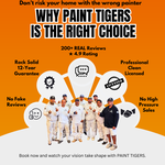 Don’t risk your home with the wrong painter—some paint jobs end up like a bad first date, messy, disappointing, and expensive to fix. Here’s why PAINT TIGERS is the right choice: with over 200 real reviews and a 4.9-star rating, no fake reviews, no high-pressure sales, and a 12-year rock solid guarantee, we deliver professional, clean, and licensed painting every time. Don’t make the mistake of choosing the wrong painters—choose PAINT TIGERS. Ready to give your house a PAINT TIGERS transformati