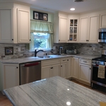 "I am absolutely thrilled to share my experience working with [Contractor's Name] for my recent kitchen renovation. What started as a small, outdated kitchen has been miraculously transformed into my dream culinary space, thanks to the exceptional craftsmanship and dedication of The Kitchen Wizards. Let's start with the cabinets â they are simply stunning. From the moment I laid eyes on them, I knew they were the perfect fit for my vision. The attention to detail and quality craftsmanship are evident in every inch, and they have become the focal point of my new kitchen. The installation process was seamless, a testament to the expertise and skill of the team at the Kitchen Wizards. They worked diligently to ensure that every cabinet was placed with precision, resulting in a flawless finish that exceeded my expectations. Throughout the renovation journey, communication with Kitchen Wizards was nothing short of stellar. They kept me informed every step of the way, providing updates and addressing any concerns promptly. Their commitment to keeping the lines of communication open made the entire process smooth and stress-free. The electrical work done by Kitchen Wizards is impeccable. The lighting fixtures, under cabinet lighting and pendents they installed not only illuminate the space perfectly but also add a touch of elegance to the overall design. And let's not forget about the countertops â they are absolutely gorgeous. The selection offered by the Kitchen Wizards is unparalleled, and I couldn't be happier with the quartz option they helped me choose. It adds a luxurious feel to my kitchen and ties the whole look together beautifully. In addition to the cabinets and countertops, Kitchen Wizards also installed new hardwood floors and refinished our old floors on the entire first floor, which have completely transformed the space. The warmth and character of the wood bring a sense of coziness to the kitchen, making it a welcoming environment for cooking and gathering. Last but certainly not least, Kitchen Wizards installed a new patio door, which has not only improved the functionality of my kitchen but also floods the space with natural light, creating a bright and airy atmosphere. In conclusion, I cannot recommend Kitchen Wizards highly enough for anyone considering a kitchen renovation. Their expertise, attention to detail, and commitment to customer satisfaction are unparalleled. Thanks to them, I now have the kitchen of my dreams, and I couldn't be happier with the result."