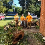 "A great team of guys steady working! No standing around. They worked very hard removing a huge tree in my backyard. A large limb had broken off and the tree needed to come down. Because if no access a climber took it down from the top! Amazing to watch! The other guys quickly hauled the parts he removed to the front of the yard to be loaded into a truck and some was mulched. Elmer used a Bobcat to haul larger parts but many parts the climber sawed off the guys put in their shoulders and walked them to the front where their trucks were parked. Maybe 5 hrs here and a clean back yard when they left. I highly recommend this company. Barb Matthews "