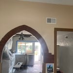 "They arrived early cleaned up the two areas then applied a finish coat of plaster over the surfaces. Cleaned up areas. The coated areas look fine."