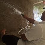 Larry pressure washing the garage