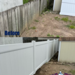 Removal of old wood fence and installation of new 6' White Vinyl Privacy fence